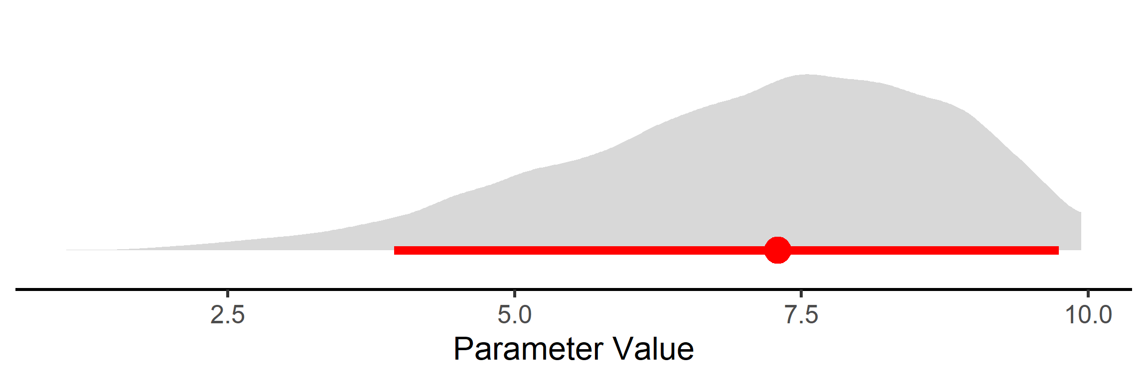 We report the center of the posterior distribution (e.g., the Median) as our single “best guess” for the parameter.