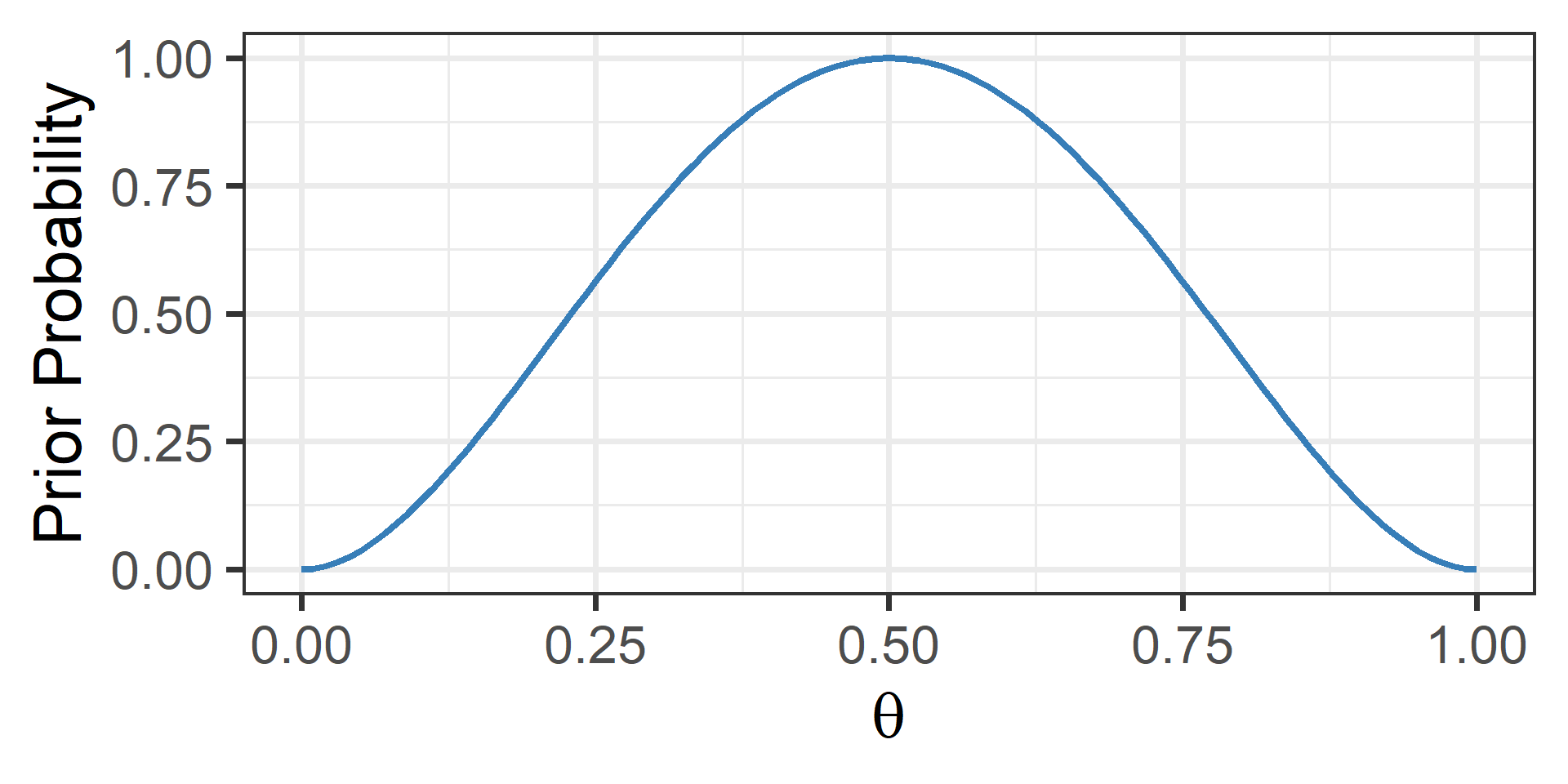 \[ P(\theta|\text{Data}) \propto \frac{P(\text{Data}|\theta)P(\theta)}{P(\text{Data})} \]