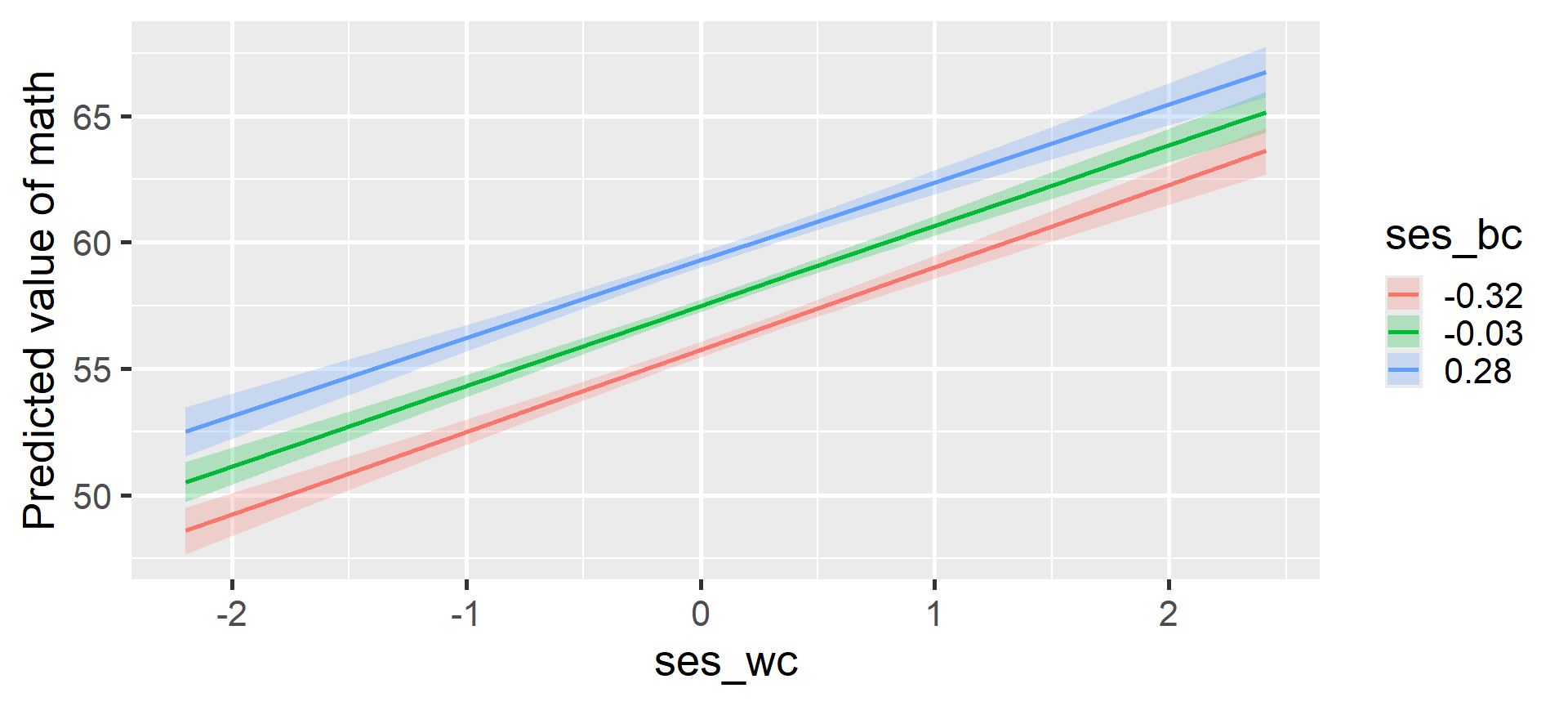 math ~ 1 + ses_bc * ses_wc + (1 + ses_wc | school)